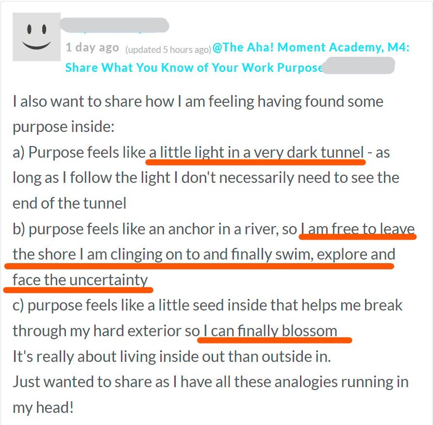 At the end of this process, participants in The Aha! Moment Academy, find that do work that fits and fulfills them by doing one of the following: